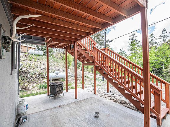 Escape to the cool Sacramento Mountains in the Village of Cloudcroft and start enjoying the beauty of Mountain Living! This cute 3 Bedroom, 2 Bath modified A-Frame is just what you are waiting for! Step in the ground level entry to a mud-room/hallway with tiled flooring that leads you to a spacious bedroom with newer vinyl flooring or could be utilized a second living area or office, full bathroom and laundry room both with tiled flooring. The second floor features tiled flooring throughout, a spacious living area with access to the deck where you can enjoy the cool summer mountain weather, quiet sunrises and amazing sunsets and your favorite grilling foods! The second floor also features a spacious kitchen with plenty of room to cook your favorite meals and a second full bath. Make your way up the stairs to the third floor featuring two bedrooms with newer vinyl flooring and a balcony off of one of the bedrooms to enjoy the cool mountain air. Home has a dog run on the side of the home, graveled circular drive, the home also backs the Lincoln National Forest and is a short distance from some awesome mountain trails! Don't wait and miss out on this amazing property and Schedule your private showing today. Don't forget to check out the 3D Virtual Tour! Broker owned.