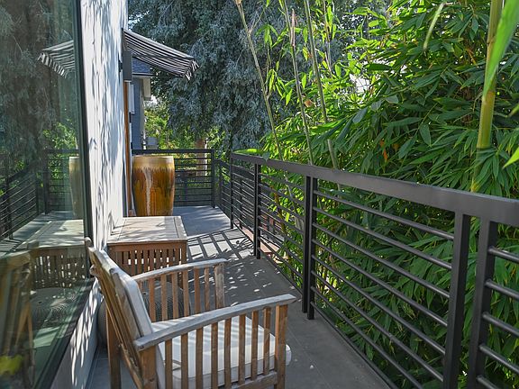 If you want to enjoy the resort-like living, the backyard is the place to be! A contemporary oasis, this outdoor destination is graced by a beautifully designed modern pool with elevated overflow hot tub. The backyard is surrounded by a lush verdant vegetation and includes multiple seating arrangements, providing enough seating for you and your visitors. The long second floor balcony provides a birds-eye view of the backyard and is also a great place to unwind as you take in the tropical-themed landscaping and top-class amenities.
