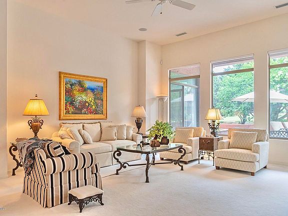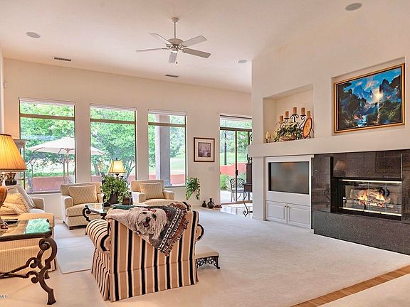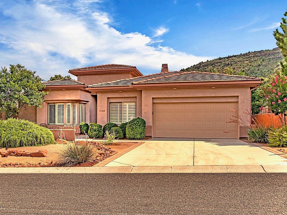 This home is located on Upper Crown Ridge and shows like a model! It's situated on the 9th hole at the Sedona Golf Resort with gorgeous Red Rock views! This is the 4 bed 3 bath Jerome plan and has custom upgrades throughout. Red Rock views in the front and golf course views from the back. Granite and Corian finishes in black and white accents throughout the master bathroom and Jenn-Air Appliances in the kitchen. Custom Plantation shutters lead to an outdoor entertaining area with a built-in BBQ and Flagstone Saltwater Spool. The entire exterior of the home was freshly painted, July 2020.