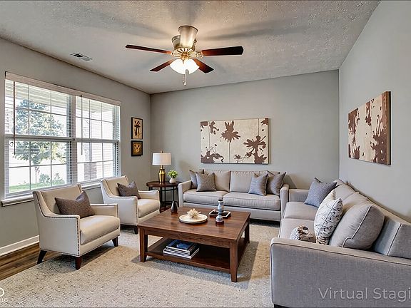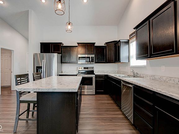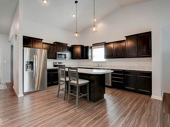 Discover your dream home in the sought-after Riley Ridge community! This stunning 3-bedroom, 2-bathroom residence, built in 2020, sits on a premium lot boasting picturesque pond views. Designed for effortless entertaining, the open-concept living area features vaulted ceilings in the kitchen and great room, creating an airy and inviting atmosphere. Enjoy a designer kitchen with upgraded staggered cabinets and elegant pendant lighting, complemented by beautiful, easy-care vinyl plank flooring throughout. The primary en-suite offers luxurious upgraded mirrors, hardware, and a spacious step-in shower. A versatile bonus room, currently staged as a dining room, can easily transform into an office, den, or playroom to suit your needs. With these thoughtful upgrades already in place, this home is move-in ready and waiting for you!