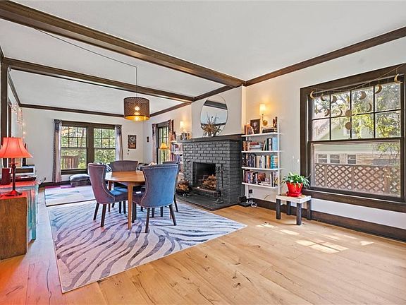 beams with other original vintage charm. Back yard is fenced with plenty of space for landscaping, gardening, dogs, etc. Upstairs is another