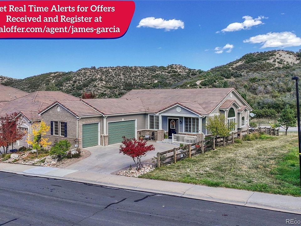 AMAZING ONE STORY HOME WITH BREATHTAKING VIEWS, backs to the Ridgeline Trails Open Space Area and adjoins to a wild life passthrough/greenbelt area, near the top/end of cul de sac road. Oversized 3 vehicle garage, no maintenance yard, large newer composite deck, hail resistant cement tile roof, natural lighting throughout, full finished basement with lots of storage, well loved & maintained home are only a few bonuses for this property.