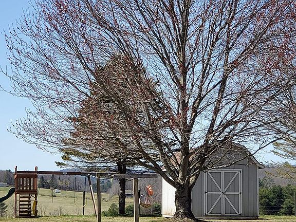 Nice home in a nice neighborhood. Home has a circle drive out front, with beautiful mature shade trees and landscaping. Vinyl siding and permanent brick foundation. Open front porch and covered rear deck. The rooms inside are good sized with walk in closets. Seller stated she has burned wood in the fireplace. Updates include: newer windows, hot water heater, showers, vinyl floors and heatpump. There's a nice outbuilding in the back yard, and an above ground pool. Also included is a wooden swing set as well as the clothes line. Seller says there are beautiful sunrises and sun sets, that can be enjoyed from the front and rear decks. this home would make a great family home or investment property. Some blinds and curtains convey. The location is amazing, country feel but only minutes to downtown Galax, Also in close proximity to the Blue Ridge Parkway.