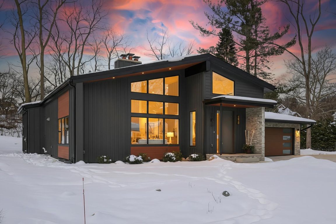 Mid-century modern flair meets modern convenience in the stunningly elegant and versatile open space of this fully rebuilt and remodeled Ann Arbor Hills ranch. The original woodburning, two-way sandstone fireplace anchors the flexible open living space that boasts a vaulted ceiling over 15' at the peak and 11'4' wall height, while ...