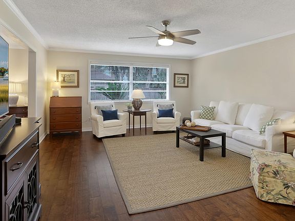 Beautifully updated, immaculate pool hm in sought after Neptune Bch situated on a lg fenced lot w/lovely hardwood trees. This home has a very cool, crisp feel w/exceptional natural light & freshly painted interior. Stunning birch hardwd flooring in living areas & newer carpet in bedrms. The kitchen is incredible w/19 pullouts, Cambria quartz countertops, under cab. lighting & ss appliances. 3 bathrms have been updated. The solar-heated saltwater pool added in 2008 is set in a generous pavered patio, screened & retractable awning makes for a great space to unwind with friends & family. All systems have been updated over the years w/the roof replaced in 2018. Great location. You are less than 2 miles to the ocean fm this beauty & no HOA or CDD fees! Stunning home! You won't be disappointed.