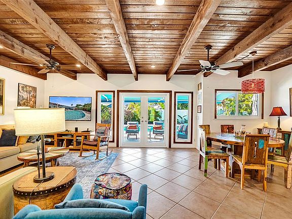 Wonderful opportunity to own a spacious 4-bedroom, 3-bath pool home in this price range. This beautiful residence offers exceptional space with a huge addition featuring a large family room, generous dining area, and a large primary suite with sitting area and 9' high wood-beamed ceilings. Impact windows and doors are installed throughout, and tile flooring flows through the main living areas. The private backyard is perfect for relaxing or entertaining with its inviting pool. Oversized air conditioned 2-car garage with convenient circular driveway large enough for multiple vehicles. Enviably situated in a popular east-side location just minutes from the beach, shopping, and wonderful restaurants, this home combines great square footage and hard-to-find features in this price range.