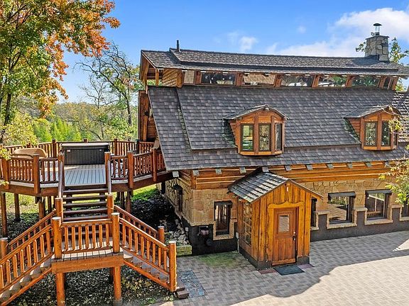 Discover your own private oasis in this charming log home nestled amidst the tranquility of William Obrien State Park. With 5 acres of lush land, this idyllic retreat offers breathtaking park views and unparalleled peace. Situated just outside Marine on the State Croix, providing easy access to amenities while maintaining a secluded ambiance the log home's timeless design blends seamlessly with the surrounding natural beauty. Inside, you'll find warm wood accents (with over 28 wood species used) - all elements of home have been custom built, from floor to ceiling. Warm yourself by large stone (wood burning) fireplace (capable of heating the home), enjoy updated windows that showcase the stunning scenery, newer steel roof, granite counters, high end appliances, Navien high efficiency combo boiler, recently stained/chinked exterior, & solar panels (that typically provide a credit). A must see updated deck with maintenance free decking, ready for you to relax in the warm waters of the hot tub while overlooking the park. A recently built paver patio provides a 2nd spot for outdoor living/entertaining. There's a large outbuilding/garage(32x50) with a private loft/guest area, so many uses for this building...This opportunity is priced below appraised value and all furnishings are included. Whether you're seeking a peaceful retreat for weekend getaways or a permanent home surrounded by nature, this property offers the perfect opportunity.