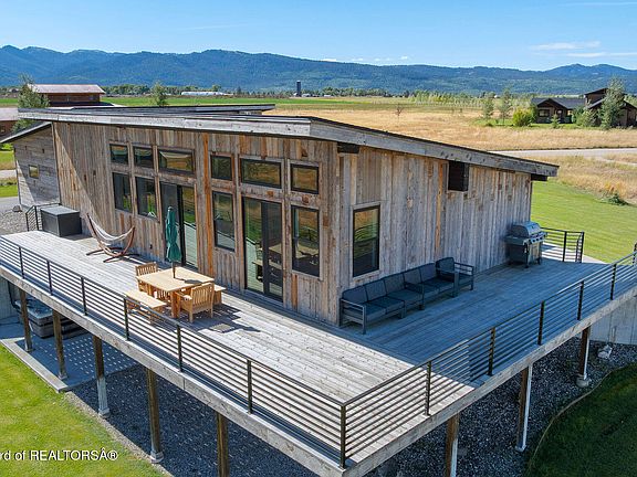 Enjoy sweeping 360-degree mountain views from every room, including a view of the Grand Teton from the kitchen and primary suite. Additional amenities include a dedicated laundry room, oversized garage, bonus living/media room, and a brand-new storage shed for all of your recreational gear and lawn equipment. Outside, a hot tub offers the perfect spot to relax while taking in panoramic vistas. With its thoughtful layout, modern finishes, and mountain charm, this property is ideal for both everyday living and entertaining.