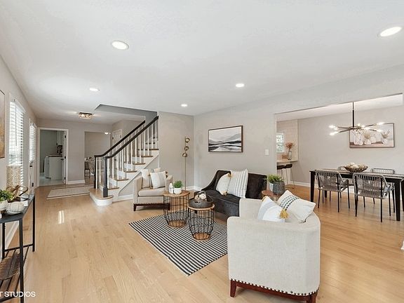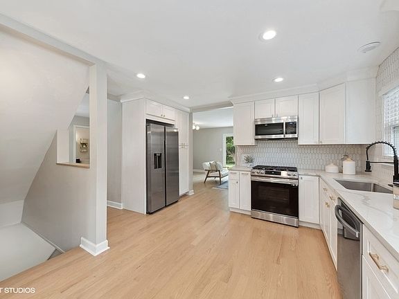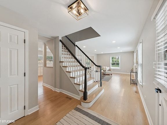 Welcome to this beautifully remodeled and spacious home featuring timeless hardwood flooring throughout. As you walk inside, you are greeted by a welcoming foyer with a wood spindle staircase, adding a touch of elegance and character to the entryway. With a host of modern upgrades and thoughtful design, this home is a true gem. The remodeled kitchen boasts stunning quartz countertops, gleaming stainless steel appliances, and elegant white wood cabinets. This kitchen is a chef's dream and a perfect gathering place for family and friends. The convenience of a first-floor large laundry room/mudroom adds to the functionality of the home, making daily tasks a breeze. Upstairs, you'll discover four light-filled bedrooms, each offering a comfortable and inviting space. The primary suite is a true retreat, complete with a walk-in closet and a private bath featuring double sinks. Additional highlights of this home include bathrooms that have also been thoughtfully remodeled to reflect modern tastes, a full basement with higher ceilings, and new vinyl plank flooring. The basement also boasts a bonus room that can serve as an extra bedroom or a versatile space to suit your needs. Recent upgrades include a new roof in 2022, new dual-pane windows that enhance energy efficiency and curb appeal, and a freshly paved driveway and back patio, perfect for outdoor relaxation and entertainment. This home's location is equally impressive, with a park right up the street for outdoor enjoyment. It is conveniently situated close to a golf course, Heritage Park, and a pool for recreational activities. Plus, it offers easy access to shopping, the expressway, and public transportation, making daily commutes and errands a breeze. Don't miss the opportunity to make this remodeled and updated home your own. With its modern amenities, spacious living areas, and ideal location, it's the perfect place to create lasting memories.