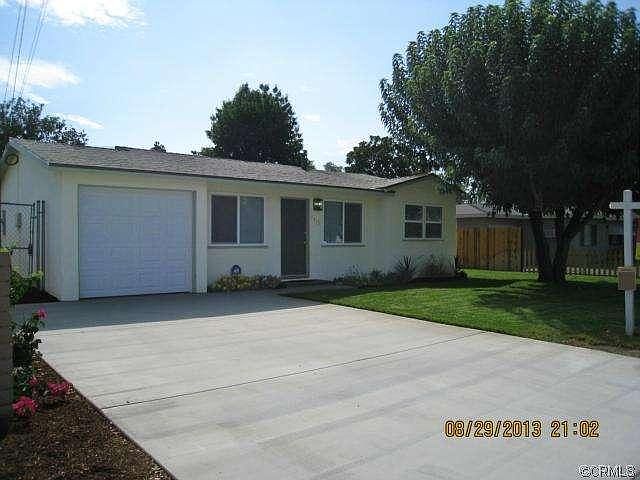 Completely remodeled 2 bedroom home, TURNKEY! The list of upgrades include: new roof, new patio cover, new electrical panel, new copper plumbing, new exterior/interior paint, new double pane windows, new concrete driveway, upgraded landscaping with sprinkler system on timer, new laundry hookups, new garage door and fire door with direct access to home. The kitchen has new cabinets and granite counters with coffee bar, new sink/fixtures, and newer appliances, including gas stove, dishwasher and overhead microwave. There is also a new gas wall heater, new ceramic tile flooring in the living room and carpet in the bedrooms with new baseboards/mouldings. The bathroom is completely remodeled with new fixtures. New fans, all new light fixtures and new front window coverings. Huge oversized lot, zoning will allow another structure to be built in back yard for extended family or rental.