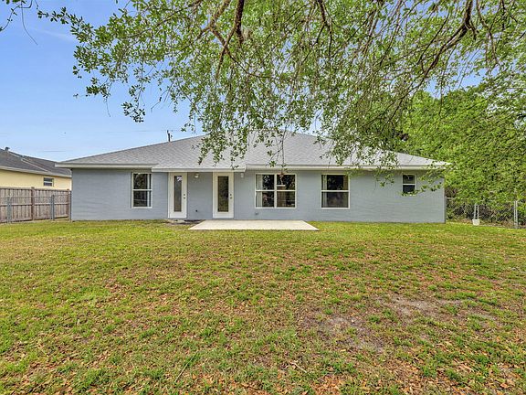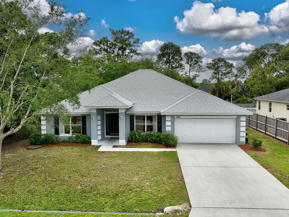 Welcome Home! Step into this light & bright 4-BR, 3-BA CBS home with vaulted ceilings & layout designed for comfort & style. Talk about Luxury, the Primary Suite has TWO full bathrooms so you & your partner can each have your own private retreat. No more sharing counter space or waiting for your turn. Formal dining & living rooms give you flexibility for an office, playroom or den. The open kitchen with a pantry, ample cabinets, & granite countertops is perfect for entertaining family & friends. Fenced backyard is a dream with large oak trees, and an interior canal in the back for additional privacy. Addl Features: NEW ROOF 2023, Diagonal tile throughout, Roman tub & walk-in closets, 2-car garage. Close to Tradition, shopping, dining, entertainment, & I-95 for easy commute. Call Today!