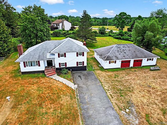 Welcome to this stunning 3-level split-style home, nestled on a spacious 1.5-acre lot offering both comfort and versatility. This thoughtfully designed residence features a fully equipped basement with a washer, dryer, water purifier, above-ground oil tank, and furnace. The first level boasts a large open space with walk-out access to the backyard and a cozy fireplace—ideal for energy-efficient winter heating. The second level includes the primary front entrance, a bright living room with an additional fireplace, a formal dining area, and a generously sized kitchen. Upstairs on the third level, you’ll find three well-proportioned bedrooms and two full bathrooms, including a primary suite with a private bath. A detached oversized two-car garage offers ample parking and storage. Additionally, a separate older structure on the right side of the property provides extra storage potential or room for customization with a little TLC. Located in a peaceful setting with fresh air, tranquility, and a spacious layout that provides plenty of personal privacy, this home is perfect for buyers seeking space, and a serene environment. Don’t miss out—schedule your weekend showing today!