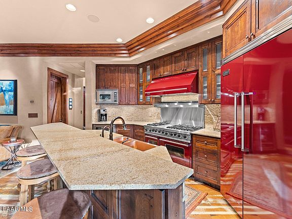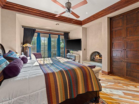 Southwest luxury at its finest in the master planned community, Monte Vista Ranch. This Tuscan beauty was a former model home and it shows! Viking professional appliances, custom mesquite hardwood cabinets, cased windows, crown molding, stunning reclaimed hardwood floors, 3 fireplaces, and clay plaster interior walls. The office has a french door to the courtyard and built-in floor to ceiling bookcases. Retreat to the luxurious primary suite which features a roaring fireplace and exterior french doors. The ensuite bath has a granite tub, glass tile shower, dual vanities, and a walk-in closet. Two additional bedrooms also have attached baths & custom closets. Outside are 3 fire pits, a built-in BBQ, covered patio, impressive native landscaping, and a gorgeous pool with jets and waterfall.