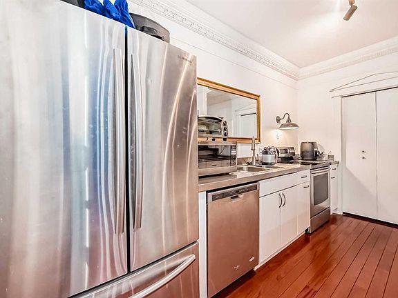 Honduras mahogany table topCrown mouldingsNewer hardwood floorsSleek stainless steel countertopsOpen-concept layoutLarge windowsNatural light