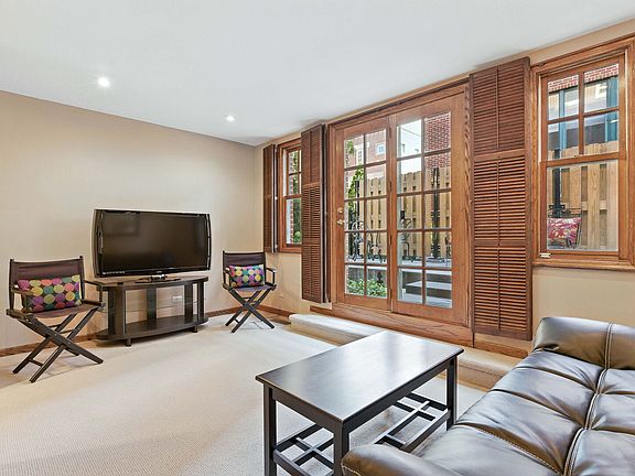 Rarely available Embassy Club end unit townhome features an abundance of first floor outdoor space including a fenced side yard and back patio with a separate grilling area. This entry level offers a multi-function bedroom that could serve as a family room, home office or play room with an ensuite full bath. The second level features hardwood floors throughout. Kitchen is updated with lots of natural stone counter space for food prep, stainless steel appliances and ample cabinets with soft close doors/drawers plus a pantry for all the extras. Large living/dining room has 9 ft ceilings, wood burning fireplace, and custom mantle surround with built in bookshelves. Living room door leads to oversized wrap around front balcony perfect for outdoor entertaining. The top floor features a spacious primary bedroom with a full wall of closets, large ensuite bathroom with oversized vanity, walk in shower, skylight, and linen closet for storage. Generous second bedroom features a full wall of closets. Additional features include an attached garage with a door that leads into the entry foyer plus a parking pad for 2nd car. Just steps to neighborhood restaurants, Wrightwood Park playground, dog park, running track, and close to Costco.
