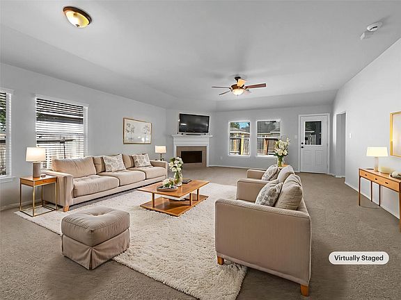 Welcome to your dream home! This property boasts a cozy fireplace, perfect for those chilly evenings. The neutral color paint scheme provides a calming atmosphere, complemented by the fresh interior paint. The kitchen is a chef's delight with a stunning accent backsplash, all stainless steel appliances,The center island offers additional prep space. Retreat to the primary bathroom featuring a separate tub and shower for ultimate relaxation. New flooring throughout the home adds a modern touch. Outside, enjoy a private patio in the fenced-in backyard, ideal for entertaining. This home is a must-see! This home has been virtually staged to illustrate its potential. Included 100-Day Home Warranty with buyer activation