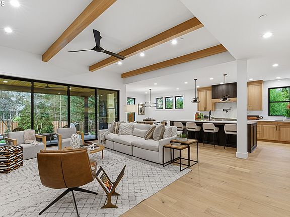 OPEN Saturday (1/24/26) 12:00 - 2:00pm - Exceptional Design Meets Prime Location – New BP Homes luxury home in Forest Highlands. This stunning NW Contemporary home blends a moody, modern palette with elevated craftsmanship in one of Lake Oswego’s most coveted neighborhoods. Featuring 5 bedrooms, 5 baths—including two ensuite bedrooms—and expansive vaulted spaces throughout, this home offers luxury at every turn. The great room impresses with 10.5–11’ ceilings, exposed beams, slat wall accents, custom cabinetry, and a striking slab porcelain fireplace. The chef’s kitchen includes a pot filler, farmhouse sink, chilled water purifier, Monogram appliance package with 48” dual-fuel range and refrigerator, and a spacious scullery (back kitchen) plus walk-in pantry with barn door access. The main-level primary suite boasts engineered hardwood, a spa-style bath with heated floors, walk-in shower with 3-piece spray, heated towel bar, taupe soaking tub, lighted mirrors, and full-height tile finishes. Additional highlights include an upstairs laundry with tile bench, multi-panel slider to covered back deck, metal/composition roof with rich hickory-stained cedar accents, and oversized 3-car tandem garage. Minutes to downtown Lake Oswego, the Country Club, and top-rated Lake Oswego schools.