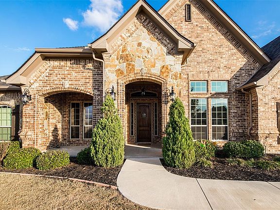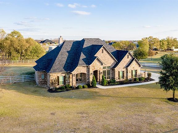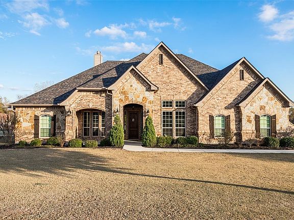 Your new home for the holidays is here! This finely crafted, 1 story custom home built in 2014 is located on 1.2 acres backing to the start of Indian Creek in Haslet. Wonderful curb appeal with brick & stone exterior, high roof pitch, cedar accents, brand new roof & gutters. Full of highly desirable upgrades & custom craftmanship throughout including extensive beam work, window trim & crown moldings. Barnwood tile throughout with new carpet in the master bedroom & walk-in closet. Study could be 4th bedroom. Fully furnished media room to enjoy move nights! Large covered patio with fireplace & stamped concrete. Mature trees & bushes attract natural wildlife including birds, bees & butterflies. 1 horse allowed!