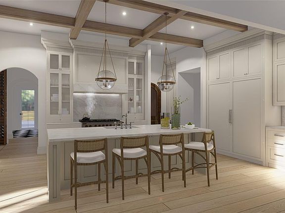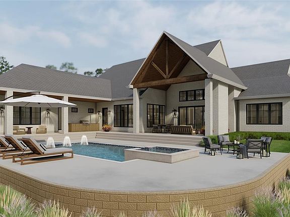 Just in time for the holidays, this brand-new home will be ready to welcome you by Thanksgiving! Tucked within the exclusive, gated enclave of Shoreline, just south of Lake Arcadia, this breathtaking estate blends timeless architecture with curated luxury. On an acre of land, the home offers 5 spacious bedrooms, including a private mother-in-law suite, alongside a dedicated gym, a separate study, and a large upstairs bonus room, all thoughtfully designed by the highly regarded Kirby Home Designs to accommodate both everyday living and elevated entertaining. The exterior commands attention with its Belmont shingles and cast stone accents. Inside, the attention to detail continues with Visual Comfort lighting and a refined palette of wood, marble, limestone, and tile flooring. The chef’s kitchen is a true showpiece, featuring a La Cornue range, panel-ready appliances, and a nugget ice machine, all seamlessly integrated into the custom cabinetry and butler’s pantry. Nearby, a stunning glass-enclosed wine rack and a gorgeous wet bar offers a dramatic space for entertaining. The mudroom includes marble countertops and five custom drop zones. Plumbing fixtures throughout the home include high-end selections such as Newport Brass, Brizo, Kingston Brass, and Delta. Soaring 14-foot ceilings in the living room and 12-foot ceilings in the kitchen amplify the sense of space and light. Wall-to-wall windows in the living and dining rooms overlook a 30’ x 16’ resort-style pool, surrounded by layered landscaping, a putting green, an outdoor kitchen and a covered patio with a fireplace. From the pool area, a set of stairs leads down into the remainder of the property, expanding the outdoor living experience and offering room to relax, garden, or entertain in total privacy. Every finish and fixture in this home was selected with precision and style, creating a residence that is both exceptionally livable and undeniably luxurious.