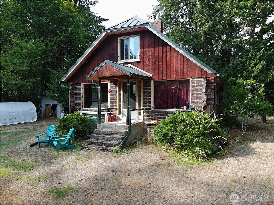 Charming 1947 log cabin on 3.17 flat acres with fruit trees and towering 12-ft blueberry bushes. This 3-bedroom, 1-bath home offers 921 sq ft plus a 625 sq ft unfinished basement, perfect for storage or potential living space. A 620 sq ft detached 2-car garage with shop provides ample room for parking and projects. Renovations are approximately 75% complete, offering the chance to add your own finishing touches and unlock full value. A rare opportunity combining character, usable acreage, and future upside just 10 minutes to Silverdale, 20 minutes to Poulsbo, 5 minutes to Hwy 3, and close to the Seabeck waterfront.