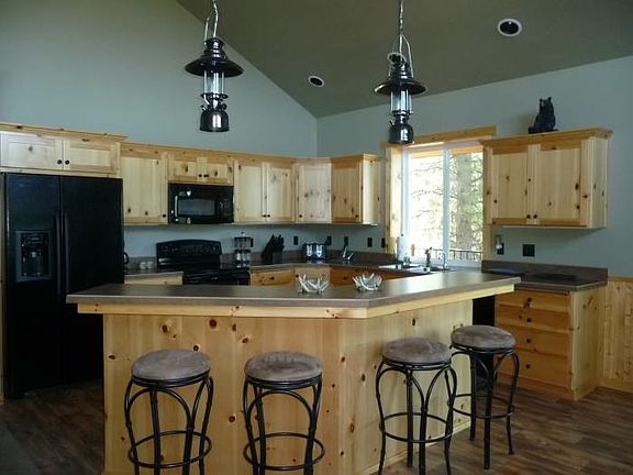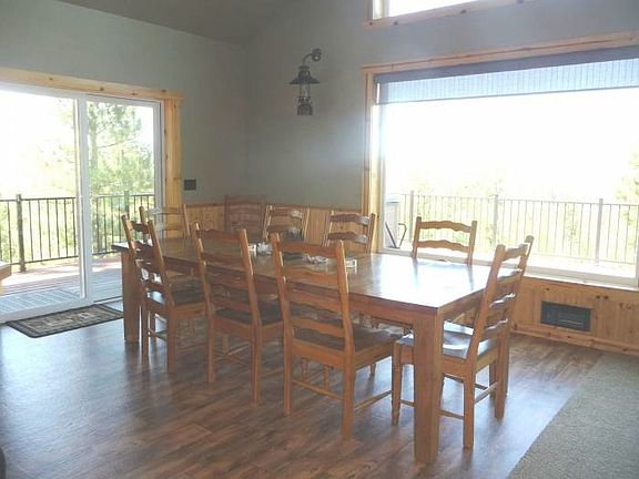 Custom home owned by electrician - so there is a ton of extras. The mountain views are panaramic from the inside of the home and from the hot tub on the deck. There are 2 master suites with baths and 2 extra bedrooms with bath between in hall. Large laundry area - and area to ake off ski cloths etc. The Kitchen is open to the living room with tons of cabinets. This home comes turn key down to the dishes - linins and 4 big screen TV's. there is also room for an additional 600 ft in the basement for future rec room.This home is set up for the owner who has load of toys to play with in the wilderness