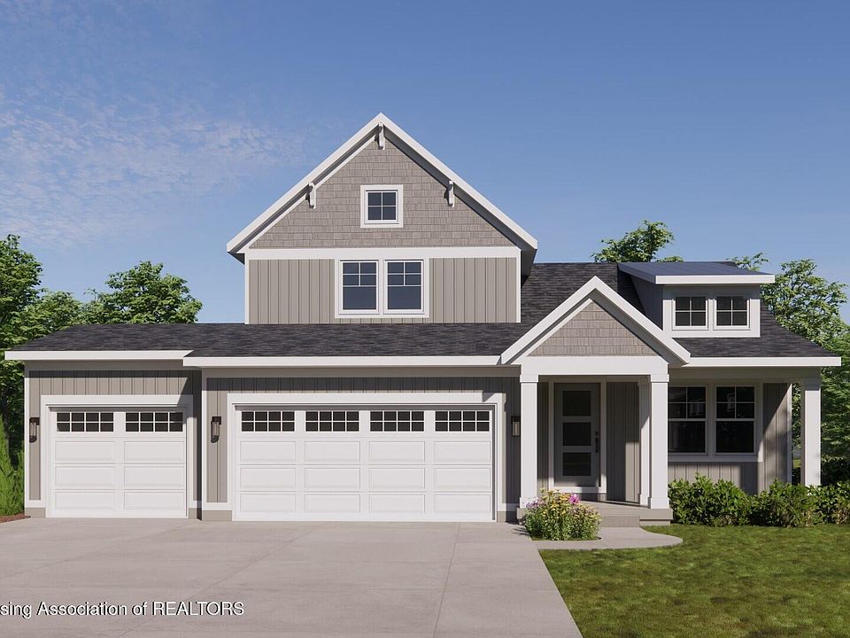 Welcome to 14103 Ambrosia Ave, a beautifully designed Amber home plan in the highly desirable Thomas Farms community of DeWitt. This brand new Eastbrook Home features 5 bedrooms, 3.5 bathrooms, and 2,640 square feet of expertly crafted living space. Built with Eastbrook's energy efficiency standards and backed by a full one year warranty, this home delivers both long-term value and everyday comfort. The main level offers an open-concept design with a spacious kitchen featuring a quartz island, walk-in pantry, and designer cabinetry, all flowing seamlessly into the dining and living areas. A cozy fireplace anchors the great room, while large windows fill the space with natural light. --> The main floor Owner Suite is a private retreat, complete with a walk-in closet and luxurious bath with a tile shower and double vanity. A convenient mudroom and half bath complete the main floor. Upstairs, you'll find three additional bedrooms and a full bathroom, offering the perfect layout for family or guests. The finished lower level adds a large rec room, fifth bedroom, and a third full bathroom—ideal for additional living space or entertaining. Every selection in this home has been hand picked by one of our professional Eastbrook interior designers, creating a cohesive and stylish look throughout. Located near top-rated schools, shopping, and parks, this home is a must-see.