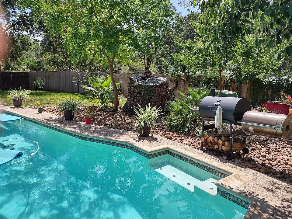 In ground poolViews of the poolOpen floor planStainless steel appliancesSpacious master bedroomLarge island kitchenLush landscaping