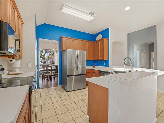 The kitchen boasts custom cabinets, abundant counter space, stainless steel appliances, updated tile, and decorative lighting—and it opens seamlessly to the living area, making it ideal for family gatherings. Additional highlights include fresh interior paint, gutters, an in-ground sprinkler system, and a covered patio. This home is truly awesome and a must-see!