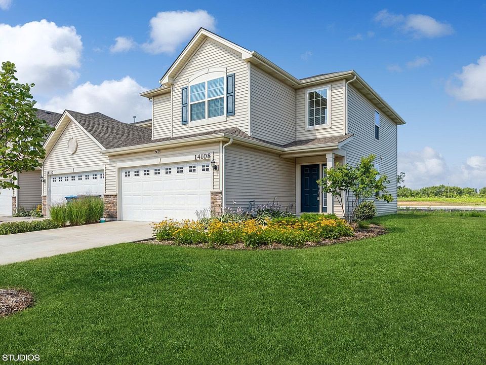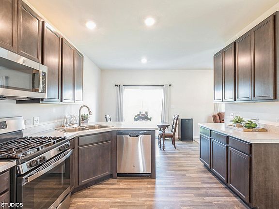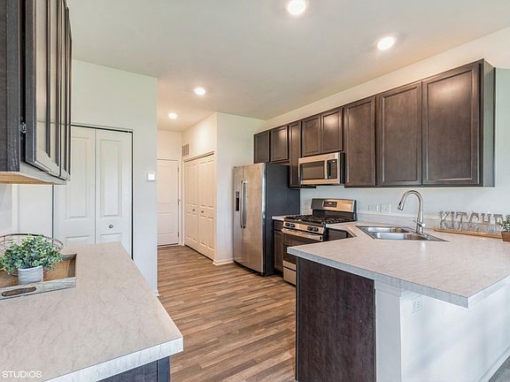 Fantastic 2 story end unit with 2 car garage! 3 upper level bedrooms (laundry on same floor, like new Samsung washer & dryer stay!) Owners bedroom features dual walk in closets, private bath. Nice sized kitchen with appliances (new 4/24 faucet & garbage disposal) Dinette area opens to patio and small yard. New in 4/24 water softener. This home is a great value, and only 4 years new! Really fun place to live, Rose Garden Estates amenities include pool, clubhouse, splash pad . Walking paths nearby, close to restaurants and easy travel. No work townhome, association fee includes lawn care and snow removal. *** This IS a three bedroom home, there are no photos of bedroom #3