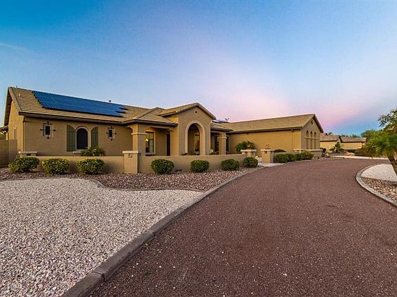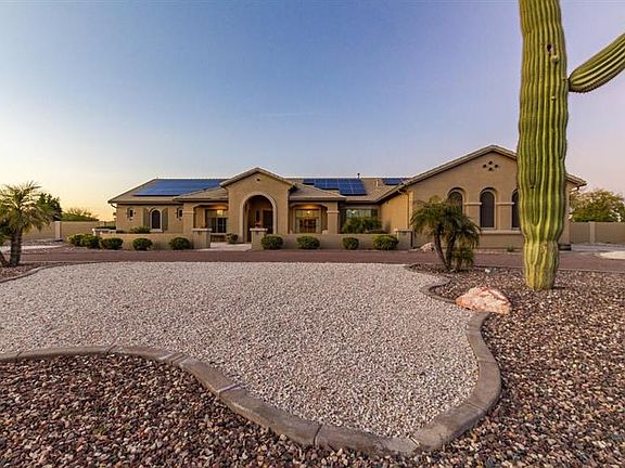 Must see dream home! This 3000+sq ft home boasts extensive upgrades inside and out. 3 bedroom, 2.5 bath with den office and game room. Enjoy the gourmet eat-in kitchen with custom lighted cabinetry, granite countertops, island breakfast bar w built in wine cooler. Built in appliances, including oven, microwave and 42'' fridge, French doors lead you into the large master bedroom, w walk-in closet. Luxury master bathroom provides fully-tiled, walk-in dual head shower, soaker tub, dual sinks vanities. Entertain guests in this resort style backyard featuring covered patio w ith outdoor kitchen built in bbq. Large Ramada, private pool w waterfall spills and fire woks and horseshoe pit area. Elegant traveretine and paver walkways surround the pool.