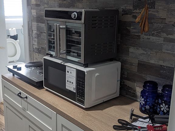 This modern apartment offers your own separate entrance and complete privacy. The kitchenette is fully stocked with modern appliances made specifically for your tiny space including a double cooktop, dishwasher, microwave, refrigerator/freezer and air fryer toaster oven. Of course we have a Keurig for your perfect cup of coffee or tea. The apartment is fully furnished with all modern comforts including: private entrance, smart TVs, washer/dryer, individually controlled heat/AC and complimentary Wi-Fi. This is tiny house living at its best!