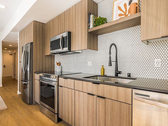 - Exterior features: Barbecue, Bike Parking, Clubroom, EcoBee Thermostats, Hammock Park, Latch Smart Lock Entry Doors, On-Site Maintenance, On-Site Management, Outdoor TV, Oversized Windows, Package Receiving, Parking Available, Rooftop Deck, Stainless Steel Appliances, TV Lounge, Tile Backsplash