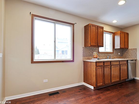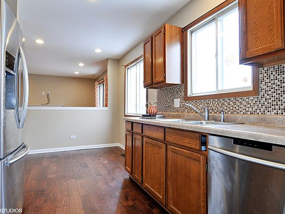 Two story home located on cul-de-sac features beautiful dark engineered hardwood floors, eat-in kitchen, & wood burning fireplace in family room. Great size master bedroom with walk-in closet. Private backyard with large deck that seats up to 14 is perfect for entertaining! Location is also ideal, close to plenty of restaurants, stores & Fox Valley mall! Metra is about 10 min away also, great for those who commute!