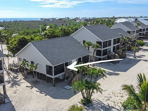 Coastal Elegence along Captiva’s coastline, where luxury and contemporary blend together seamlessly. A one-of-a-kind, fully renovated 3-Bedroom, 3-Bathroom duplex Beach Cottage, expertly reimagined by a professional interior designer to exude sophistication and comfort. Fully furnished with curated, upscale decor. Step into the heart of the home—a beautifully curated kitchen featuring Vadara Sereno Quartz countertops, high-end smart appliances with an integrated refrigerator and dishwasher, hidden coffee nook, and custom cabinetry with polished nickel hardware. The Gulf-front living and dining areas flow effortlessly, with a dining space highlighted by wood detailing and modern lighting. Smart Frame TVs throughout offer an immersive entertainment experience. Additionally, the condo is lined with luxurious engineered hardwood flooring. Walk up the floating staircase to the versatile 3-bedroom loft featuring an upper level that extends to include extra closet space, study enclave, and flexible options for use—perfect as a cozy retreat or additional sleeping quarters with a pull-out sofa. The en-suite primary bedroom features a bathroom offering quartz countertops, signature hardware, and a floor-to-ceiling tiled walk-in shower with a seamless glass door, creating a sanctuary of relaxation. Outside, the screened lanai invites you to take in breathtaking Gulf views while offering a private stairway to the pristine sandy beaches. A rare feature of this property is the custom fitted under-home storage space that is a one-of-a-kind! Rinse off the day’s adventures in the outdoor shower, beautifully fitted with navy blue mosaic tiles. Every inch of this residence has been meticulously crafted for comfort, elegance, and effortless Gulf-front living. Experience a lifestyle of unparalleled luxury in this rare Beach Cottage. Extensive feature list available.