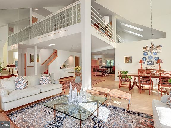 Looking for that rarely available spacious main-level living home? You’ve found it! Welcome to 1411 Belcastle Ct., a two-level Wrenn patio home in the Lake Newport community of North Reston. The extended double-wide driveway leads you to a beautiful private front patio welcoming you to the front door. As you enter - soaring ceilings, expansive walls of windows, and skylights flood the living room and dining room areas with natural light! Custom track lighting in the dining area and entrance enhances the natural light. Gleaming white oak floors span the main level. The centralized kitchen has Jenn Air appliances, custom designer lighting (George Nelson bubble pendant lights), a central island on wheels, and granite countertops. There is a casual eating area off the kitchen and adjacent to the family room. A granite-topped wet bar allows space for wine racks. Bang and Olufson stereo speakers are scattered about the house with the central console located in the dining room. In addition, there are built-in speakers for surround sound television in the family room. The highly desirable open concept will be sure to please the most discerning buyers. The family room in the rear of the house has vaulted ceilings. It features a wood-burning fireplace that serves as the focal point for the entire main level as you step in the front door. Two single glass-paneled doors lead to the large deck on one side and a private and screened-in porch on the other, both with views of lush green landscaping in the warm months. It’s perfect for outdoor entertaining in the warmer months. The main level primary bedroom suite has vaulted ceilings, sliding glass doors to the deck, a dressing or sitting area, and a walk-in closet with built-in shelving. The luxurious primary bathroom has a dual sink vanity, travertine marble floors, and stunning walnut cabinetry. It features a soaking tub and a separate shower. Upstairs, you will find an open loft area with rosewood hardwood floors - perfect for a home office and/or work-out room: two additional bedrooms, each with a walk-in closet with built-in shelves and a shared full bath. There is additional storage in the floored attic area off one of the bedrooms. A two-car garage will hold two full-size cars with room for storage on the walls. There is a spacious mud room/laundry room conveniently located from the garage entrance and a generous-sized coat closet too. The small cluster of 18 exquisite, beautifully landscaped homes offers ample guest parking, lawn care, snow removal, and a community dock on Lake Newport. There is access to walking paths to Lake Anne and North Point shopping center. Easy access to major commuting routes and Reston pools and tennis courts.