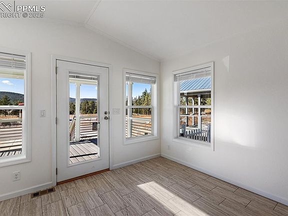 New Tiny Home in Woodland Park – Mountain Living Made Simple! Brand-new 500 sq. ft. IBC modular home located in a quiet, well-planned community just five minutes from downtown Woodland Park. This thoughtfully designed home features an open-concept kitchen, living room, bedroom, and full bath, plus a 10x12 composite deck perfect for relaxing or entertaining. Beneath the home is a 500 sq. ft. conditioned storage area, 5ft ceiling to easily walk in and a concrete floor and secure outside entrance—ideal for gear, hobbies, or extra space. Two off-street parking spaces are included. The monthly lot lease covers snow removal, and trash service, making this an easy, low-maintenance lifestyle. Perfect for downsizing, a summer getaway, or a peaceful full-time retreat surrounded by the beauty of the mountains.Enjoy direct access to a nearby walking and biking path, a 24-hour fitness center, and a golf course within walking distance.