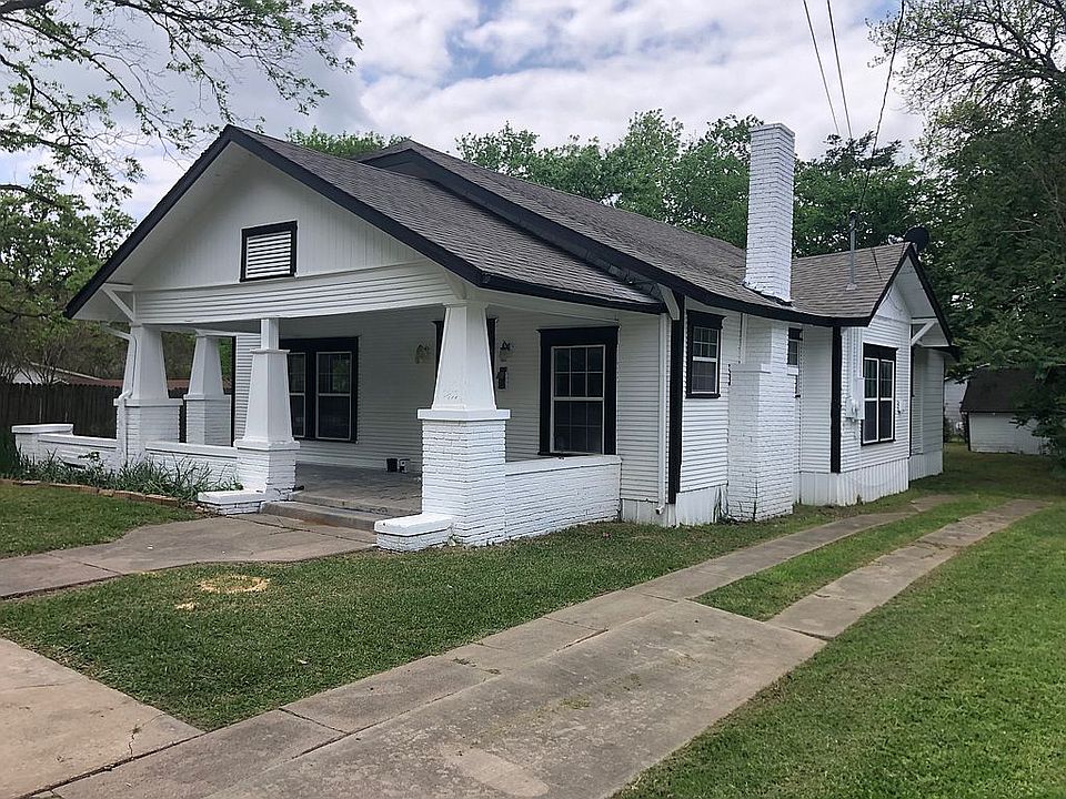 So many new improvements: all hardwood floors refinished, new vinyl plank in bathroom and kitchen, all new paint inside and out. Kitchen w/ new countertop, new dishwasher, new range, and vent hood. Beautiful large original Sears and Roebuck home with original hardwood flooring, combining old glory with modern feel! Wood burning fireplace, ornamental only. Breakfast nook. Utility room. Nice front porch. 3 Bedroom 1.5 bath with stand up shower. Large backyard with shed. Close to downtown Commerce and TAMUC.