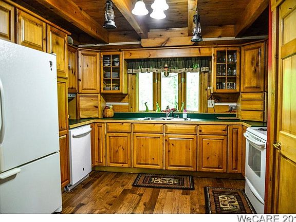 Welcome to 1411 Dogleg Road!This beautiful spacious LOG HOME features 4BR/3BA, privately nestled in the middle of tranquil 4.05acre wooded lot. Home is updated, excellent maintained inside/out Lower level features walk our mother-in-law suite, w/own private BR/LR/kitchenette. Wrap around deck provides best nature views of a "one of a kind" property!Soaring ceilings, spacious rustic great room with F/P. Loaded w/storage!Two kitchens fully dw/appliances.Private/secluded wooded lot with easy access to Auglaize River, perfect for fishing,kayaking.Pole barn(19x29) w/2 parcel. 1-yr AHS Warranty.