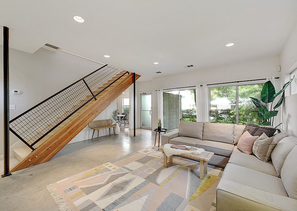 Amazing Location! Cute Eastside Condo with No Shared Walls. Quiet Gated 4-plex is walking distance to Bars and Restaurants on Caesar Chavez and less than 0.5mi to Downtown Austin. Concrete & Bamboo Flooring Throughout. Multiple Living Areas plus two Bedrooms, each with own Full Bathroom. Kitchen has Great Storage, Gas Range, and Stainless Appliances. Private Front Yard and Back Yard designated to Unit. Yard Mowing included in HOA. 2 Car Carport.