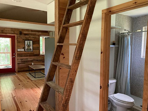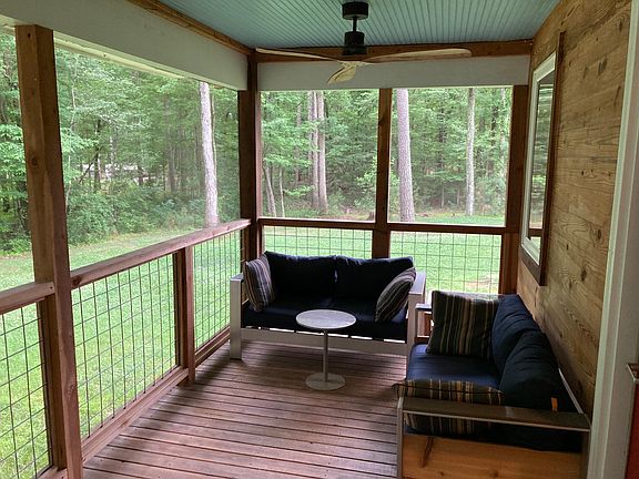 Charming sustainably designed cottage with a screened in porch, located on a wooded lot on the outskirts of Chapel Hill. The cottage is a short, traffic free drive through beautiful farm country to nearby Carrboro and Chapel Hill. The house comes fully furnished and features a kitchen with two burner stove, apartment sized refrigerator, convection oven, sink, cooking and eating utensils, pots, pans and dishes. The house also features a nook with a desk, a bedroom with queen bed and dresser, a loft space with tv and futon and a large main room with couch and coffee table as well as a kitchen island for dining and cooking. Internet, utilities and yard maintenance are included in the rent.