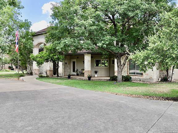 Step into a home that's not only beautifully built but truly lived in with love. Nestled on over an acre in the coveted River Crossing community, this timeless property captures the spirit of relaxed Texas living with a classic, elevated style. Every inch of this home tells a story. This open-concept floor plan was made for connection. With flow-through living and dining areas, generously sized family and media rooms, and effortless transitions between spaces, this home welcomes everything from casual Sunday breakfasts to lively holiday celebrations. The heart of the home-the kitchen-is both functional and charming. Cook with gas on the stainless cooktop, gather around the expansive center island, and enjoy the easy proximity to both the formal dining area and the cozy living space anchored by a rustic stone fireplace. It's a space that inspires both meals and memories. The peaceful master suite on the main level features dual walk-in closets, a jetted soaking tub, and a separate walk-in shower, it invites you to slow down and unwind at the end of the day. Upstairs, additional bedrooms and a fabulous media room offer plenty of flexibility for guests, family, work, or play. Step outside to find your own slice of Hill Country heaven. The spacious, fenced backyard backs up to a greenbelt and features a pergola-covered outdoor kitchen, bubbling hot tub, and firepit-perfect for summer barbecues, fall evenings under the stars, and every sweet moment in between.