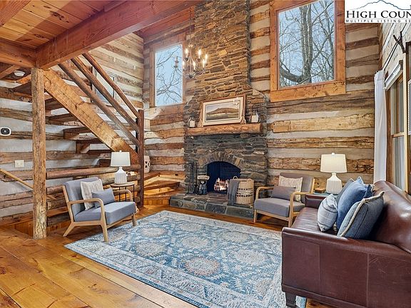 Tucked away in the peaceful mountain community of Todd, NC, this inviting rustic retreat is a place where time naturally slows and everyday stress fades away. Hand-hewn logs, a beautifully handcrafted staircase, and a stone propane fireplace create a warm, welcoming atmosphere that feels instantly like home. Evenings are best spent gathered by the fire, listening to the quiet and soaking in the comfort only a true mountain cabin can offer. Sold furnished minus a few minor exclusions, the home allows you to arrive, settle in, and begin enjoying the lifestyle from day one. Outdoor spaces invite you to linger and unwind. The home comes with a screened in back porch, front porch, and multiple decks, providing peaceful spots to take in nature throughout the day. Easy parking adds practicality, while an on-demand hot water heater brings modern efficiency to this timeless setting. The primary bedroom and bath are conveniently located on the main level, offering ease and comfort for everyday living. Easy access to West Jefferson, Jefferson, and Boone, while also offering proximity to the New River and High Country recreation options. This cozy cabin offers a rare opportunity to truly unplug, slow down, and embrace the mountain way of life.