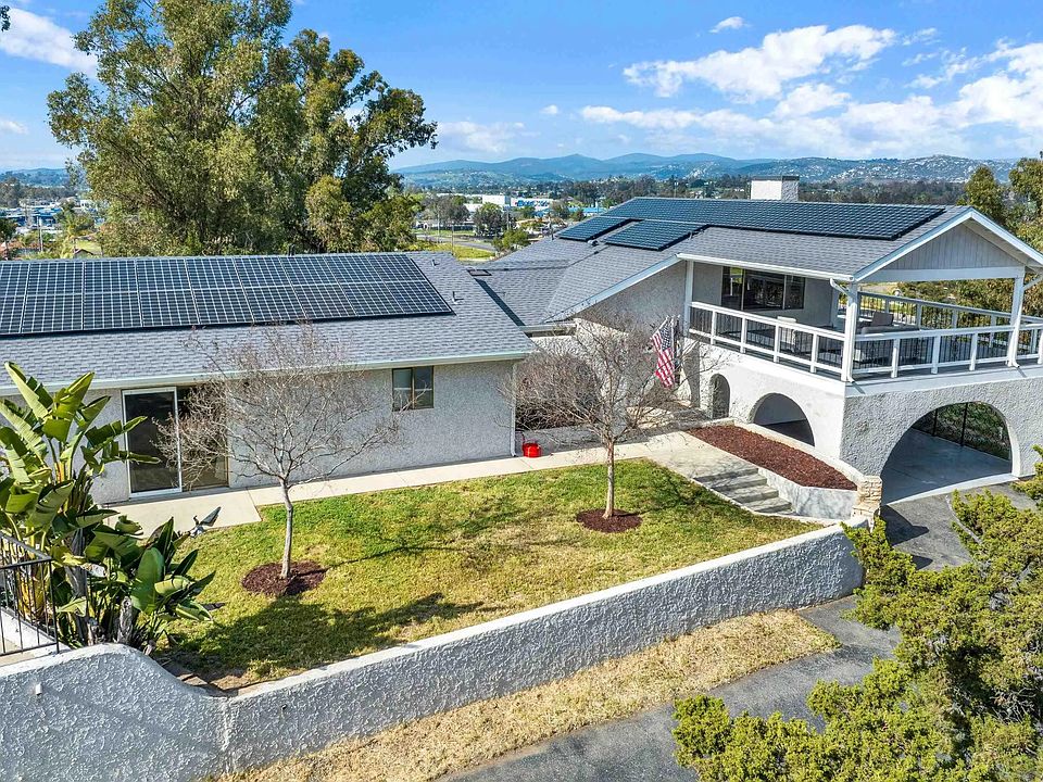 Beautiful Updated 3 Bedroom 2 Bath home with Solar/Batteries close to Ramona Middle & High School! ENTERTAINERS DREAM! Laminate Flooring, Quartz Countertops, Stainless Steel Appliances & Fixtures, Newer Kitchen & Bath Cabinets, Tiled Bathrooms, Large Master Bedroom, Living Room on Separate Upper Level with Panoramic Views! Huge 1.2 Acre Lot, Tons of Outdoor Living Space, Large Covered Deck above Garage with Wrap Walk Way- Enjoy the amazing Views of the 4th of July Ramona High School Fireworks then cool off in the Large Pool, Spa and Slide next to the Gazebo. Parking galore for your RV and or Boat!
