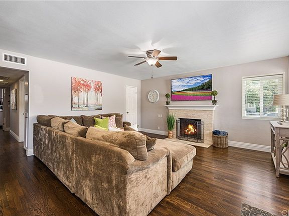 3 bedrooms and 2 bath SINGLE story Corner Lot home with Charming Curb appeal! The open floor plan will greet you as you step through the custom front door with etched glass. Living room with custom mantle and tiled fireplace adds a cozy note to the room. Kitchen with custom cabinets, granite counter tops, stainless steel appliances and a pantry are nice features. Master bedroom has a ceiling fan. Master bath features an upgraded tiled shower/bath combo and cabinetry with granite counter tops, tiled flooring and new light and sink fixtures. This Entertaining home has a 700 square foot sunroom with epoxy flooring NOT included in the square footage. Pool sized backyard has fruit trees, large patio area, a dog run and a work or storage shed. Tastefully done upgrades include light fixtures, designer interior and exterior paint colors, window coverings, baseboards, fans in every room, 6 panel doors, tile and hard wood flooring, dual paned windows, a whole house fan and exhaust fan, new water heater, upgraded A/C, heater and ducting. Wide driveway leads to the 2 car garage with roll up doors. And, don't miss the second driveway at back of home with extra wide gate which can open to store extra cars or an RV! Location counts when you can walk to shopping, restaurants and amenities. This is just the place you could call Home.