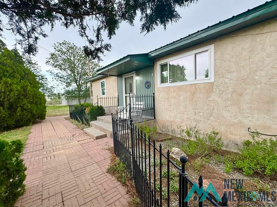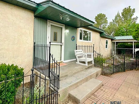Wood burning stoveSeparate denRanch style homeWell houseSeparate storage buildingPaver walkwaysPipe and chain-link fencing