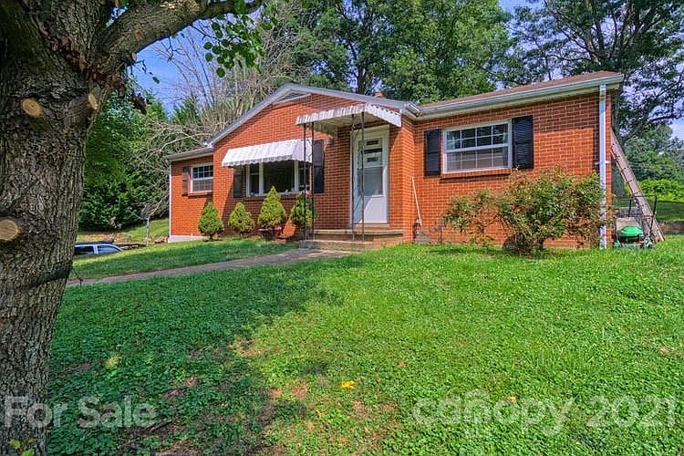 Fall in love with the character of this home; arched doorways, hardwood floors and brick to die for! Lovely open floor plan; living room, dining room and kitchen with 2 bedrooms and full bath. Well maintained home, featuring an updated kitchen, fireplace and heat pump. Flat areas in yard would be great for entertaining or fire pit. From the back patio enjoy with distant mountain views. The basement has a large open area that would make a nice workshop, garage or option to finish for extra living space. Short drive to Asheville, Waynesville or Canton! Seconds to I-40 but none of the noise!