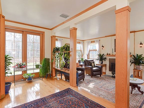 Warm and inviting country home with Stunning details on 12.3 acres. Relax on your farmers porch, step inside to gorgeous woodwork and floors, updated kitchen with quartz counters, all stainless. French doors, gas fireplace, a pellet stove, Beautiful updated baths with a separate shower and cooper soaking tub. Windsor MA, beautiful fields, a Barn with horse stall, water, storage for tractor and farm equipment. A separate chicken coop, plus a 3-car garage with workshop and storage above. Love it!