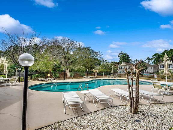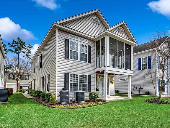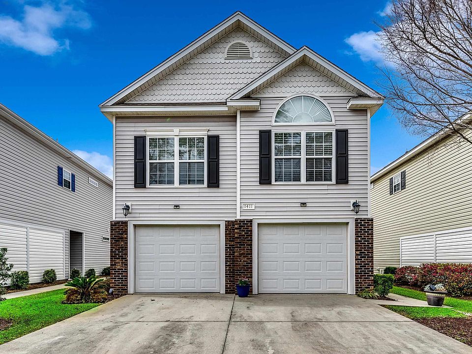 Welcome to Luxurious Living in Myrtle Beach -- The Cottages on Farrow Parkway, where modern amenities meet a prime location. Just a short walk to Market Common, the Crabtree Memorial Gymnasium, Horry County Technical College, and The International Culinary Institute, this four-bedroom, three-bathroom raised-beach house offers an exemplary blend of convenience and comfort. And it gets better, it is only a golf cart ride to the beach and the Myrtle Beach State Park. Upon entry at the ground level, you'll be greeted by two bedrooms and a full bathroom, thoughtfully designed for both utility and versatility. One of these rooms features a sliding glass door that opens to a covered patio, which could make a fantastic home office with direct outdoor access. Enjoy the ease of accessing the large grassy area—ideal for relaxation—and a swift path to the neighborhood swimming pool. Additionally, there's a spacious two-car garage with a large storage room, providing ample space for your belongings. Venture upstairs to find an open-concept living area brimming with natural light. The large gathering room boasts a cathedral ceiling, enhanced by a strategically-placed ceiling fan. This space seamlessly flows into the adjacent dining and kitchen areas, making it perfect for entertaining or cozy family gatherings. Step out onto the screened-in covered balcony with a ceiling fan, where you can enjoy the area all day long while overlooking the pool. The kitchen is a chef's delight, fitted with 42" cabinets, stainless steel appliances, and solid surface countertops. The kitchen features both over and under cabinet lighting. A breakfast bar and pantry provide additional convenience, ensuring everything you need is within reach. Down the hall, discover two additional bedrooms, including a primary suite that's both spacious and inviting. The primary bedroom features a vaulted ceiling, a ceiling fan, and a generous walk-in closet. The ensuite bathroom adds a touch of luxury with a transom window over the walk-in shower, enhancing the room’s natural light and atmosphere. The other bathroom offers a tub/shower combination with transom window, too. This smaller neighborhood offers a unique blend of tranquility and activity. Living here, you're not only close to Market Common—known for its dining and shopping opportunities—but also able to quickly reach the beautiful beaches of Myrtle Beach by golf cart. This location encourages a lifestyle of leisure and enjoyment as you explore the local amenities.