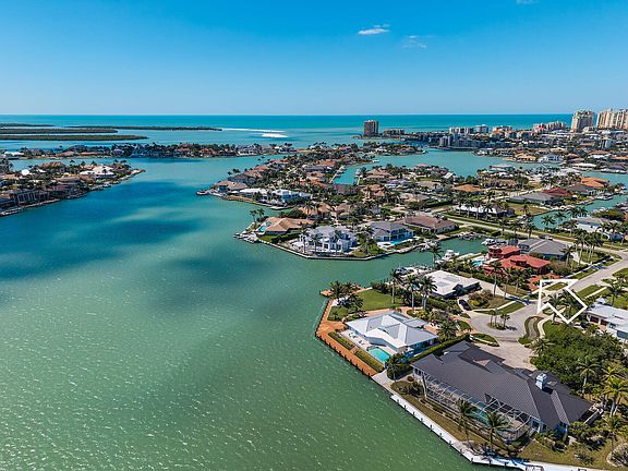 Yacht-Friendly Waterfront Marco Island Estates Roberts Bay SOUTHERN EXPOSURE 125' of Waterfront Direct Gulf Access Custom-built home nestled on a private cul-de-sac in the prestigious Estates section, of only 8 homes. Quick deep-water access to the Gulf via Caxambas Pass, this property is a boater's dream.Positioned on .43 acres, the residence offers exceptional outdoor living ,expansive water views, and resort-style amenities. A concrete 80' BELLINGHAM floating dock, with boat ramp, Propane-heated Saltwater pool & spa make this the ultimate retreat for yachting enthusiasts. 5,895 sq. ft. under air, All bedrooms on lower level. 4 Bedrooms , 2 additional rooms on upper level, ,3 Full + 2 Half Baths.Upper deck (1,090 sq. ft.) + expansive pool deck (2,850+ sq. ft.) Library with custom wood cabinetry. Viking outdoor kitchen, indoor dual gas fireplace, chef's kitchen with Viking Gas Stove, Sub-Zero, and Bosch appliances, plus 2 inside wet bars.Imported mahogany doors, imported 3/4 '' Jatoba hardwood floors. IMPACT GLASS throughout, 5-ZONE A/C Whole-house water filtration. Central vacuum, Central Alarm w/cameras, SONOS sound system, epoxy-coated 3-car garage. Lush, mature native landscaping ,fenced side yards for privacy. Located about 1 nautical mile to Caxambas Park Fuel Dock and 1.25 miles to Beach Access. This rare offering delivers the perfect blend of tranquility with panoramic wide-water views, premier boating infrastructure, and an unmatched location in the heart of Marco Island.