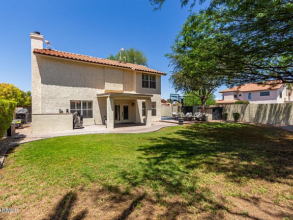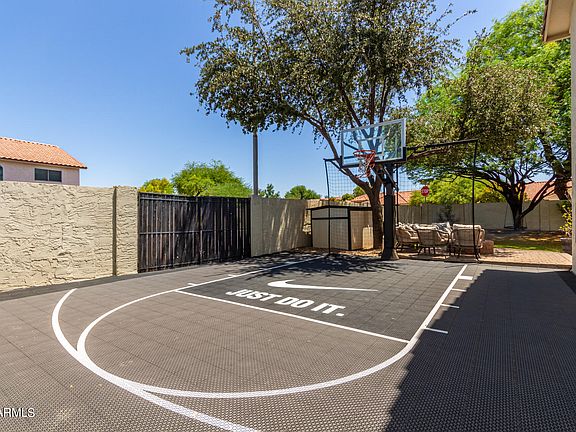 Make yourself at home in this charming 4-bedroom corner lot remodeled property with NEW AC & NEW Roof!! Walk into the bright formal living room to find vaulted ceilings, elegant new tile floors downstairs, plantation shutters, and a great room with a cozy fireplace, creating a welcoming ambiance. The kitchen is a delight with white cabinets, breakfast nook, stainless steel appliances, granite counters, subway tile backsplash, and a center island with a breakfast bar. The primary bedroom is a true retreat, boasting a barn door to a private bathroom with an AMAZING shower, dual sinks & large walk-in closet.Secondary bedrooms are upstairs. The backyard is a lush oasis with a covered patio the coolest BASKETBALL court and inviting shady seating areas, a perfect place for relaxation. With ample space, the backyard also offers the potential to fit a pool, making it an ideal home for comfort and entertaining! This welcoming community offers a large pool, tennis courts, ramada/clubhouse that are a 2 min walk from property and a beautiful lake!! Don't miss out on this one!